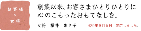 店主 横井 まさ子